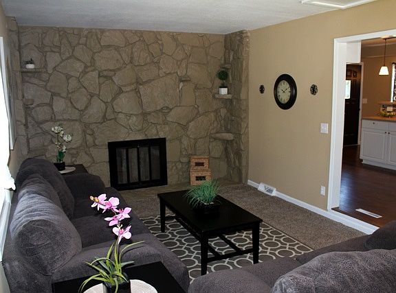 An absolutely adorable 3 bedroom, 2 bath home with additional finished room in the basement that is COMPLETELY UPDATED with many remodels including A large kitchen with A brand new Mosaic Tile back splash, stainless steel appliances and cabinet space galore! All brand new flooring as well as paint inside AND out! Make sure to take a stroll out to the large, over-sized two car garage in the back yard through the beautiful french doors in the living room that also boasts a large wood burning fireplace!
