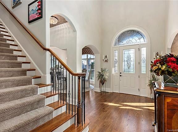 Stunning custom built home in gated Stratford Hall community. First floor master bedroom with luxurious garden tub and his and her custom closets. A second 1st floor bedroom and spacious bathroom are a fabulous bonus. Large eat-in kitchen has granite countertops, stainless steel appliances and lots of natural light. Outdoor covered porch with pergola steps down to a large stone fireplace with built-in benches and is perfect for outdoor entertaining. Large laundry room/drop zone has built-in benches and plenty of storage. 3 additional bedrooms with attached private bathrooms upstairs, plus bonus room. Custom closets and built-ins throughout. Close proximity to 485, Harris Teeter, Publix, Fresh Market, Waverly, Rea Farms and Promenade shopping centers. Come see this well maintained gem today!