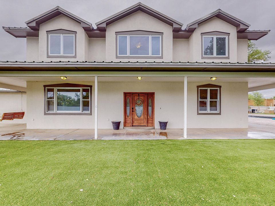 Under Contract Taking Backup OffersNestled on a sprawling 1-acre lot, this recently renovated farmhouse-style gem offers the perfect blend of rustic charm and modern luxury. The backyard is a true oasis, featuring lush turf, a heated pool and spa with an automatic cover, and a picturesque gazebo just steps from the side entrance. Inside, you'll find an inviting interior that combines classic character with contemporary comforts. The gourmet kitchen is a culinary enthusiast's dream, boasting built-in stainless steel appliances and plenty of workspace. A private office provides a tranquil setting for work or creative endeavors, while the oversized master bathroom offers a spa-like experience, complete with luxury amenities. Conveniently located just minutes from downtown Albuquerque.