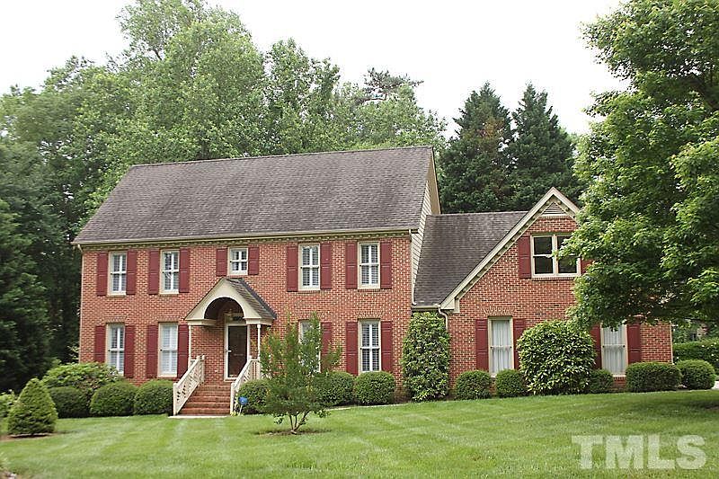 Stately brick-front home in beautiful neighborhood. Many updates include granite CT in kitchen; plumbing fixtures, lighting. Spacious family room with gorgeous wainscoting and raised hearth with shutters at windows. Light & bright MBR with 2 walk-in closets and a relaxing master bath; Huge bonus room with back stair access. Large deck for entertaining; Walk-up attic with plenty of storage; Oversized side load garage. Located in desirable North Raleigh. Home is in an estate and is sold AS IS.