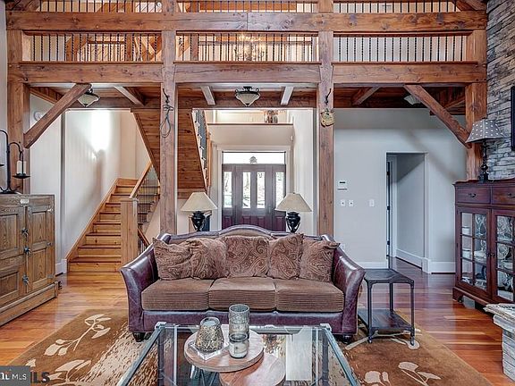 18 miles to Wegmans-Meticulously built custom designed home on 10.3 private acres. Every Amenity is offered in this 5 bed, 4 bath 4450 sq. ft. Craftsman style home. Open floor plan w/ dramatic 2-story entry; Great room w/ post & beam style, floor to ceiling stone fireplace, cherry HW floors & access to 1 of the 2 screened in porches; Chefs kitchen w/ GE Monogram appliances, granite counters, duel ovens, custom cabinets, huge center island & a cozy den; Bright dining room;1st floor owners suite w/bedroom, walk-in closet & full bath. 2nd Floor- 2 full baths & 3 big bedrooms w/ custom built-ins(1 bedroom is 15' x 44' w/ endless usage possibilities).Entertainment made easy in the w/o lower level- w/ kitchen, billiards room, family room,office,5th bedroom, full bath & 1 of a kind stone wine cellar w/ custom wrought iron door. New 1200 sq ft ?She Shed? outbuilding for office, workout area etc.;1 car garage & 2nd floor workshop. Taxes are only $3290/yr.