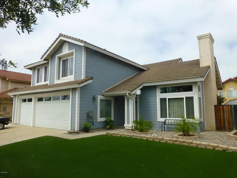 Gorgeous North Oxnard home w/Hawaiian decor pool & yard. The front doors open to a spacious entry leading to the living room w/cathedral ceilings & formal dining room. (All carpeting is brand new.) The remodeled country kitchen features granite counters, recessed lighting, custom hickory cabinets, tiled floor, brush nickel faucets, wine racks AND stainless steel dishwasher, stove top & oven plus microwave & the breakfast area. Family room w/fireplace. Separate laundry room. Upstairs, the large master bedroom features a remodeled bath w/new shower, modern lighting, tile floor & brush nickel faucets & two walk closets. Newer double pane, energy efficient Milguard Windows. Added concrete driveway for RV/boat. Front year w/low maintenance including synthetic landscape grass. AND MORE!
