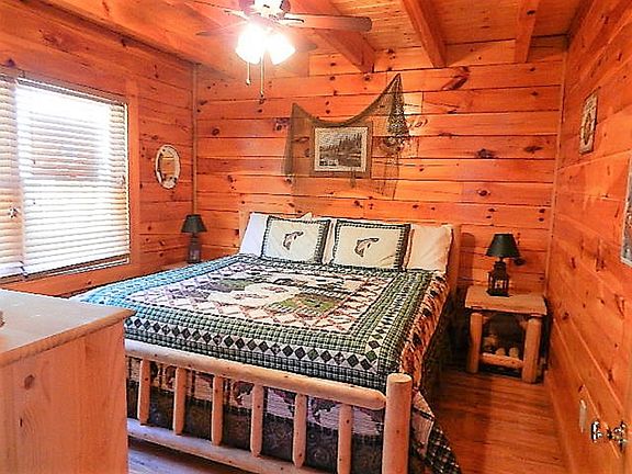 Exceptional 3 bedroom, 3 bath cabin with an excellent panoramic mountain view. Private location but only a few minutes from Dollywood and Splash Country. Easy access to both Pigeon Forge and Sevierville. Features include an open floor plan on the main level, gas log fireplace, cathedral ceilings, theater room, fully equipped kitchen with stainless steel appliances, wood floors, and a hot tub on the deck.