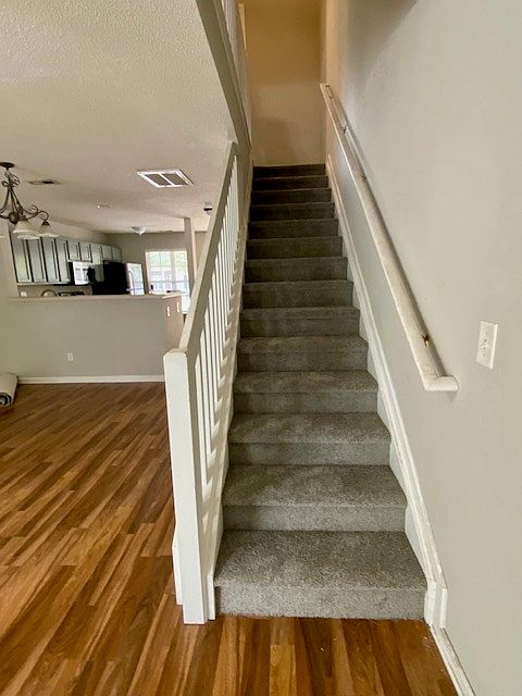 *PENDING* Like new townhome. Move-in ready! Stainless steel appliances. Harwood floors on main level. 2BR upstairs, each with own bathroom. New carpet. No smoking. No pets. Water and trash included.