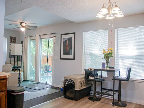 Quiet and spacious townhouse in a convenient location. This home was renovated in the fall of 2022 and features an updated kitchen and bathrooms, and has a cozy gas fireplace in the living room. Two spacious bedrooms are located upstairs along with a non-conforming bedroom or office space. Vaulted ceiling upstairs with plenty of natural light. Large closets with plenty of storage space. This home offers a private fenced back yard with established trees and a single car garage with a storage loft. Up to 2 dogs are allowed with an initial pet fee (no pet rent). W/S/G is included. Owner pays for W/S/G. One year lease. Washer and dryer. Up to Two pets allowed.