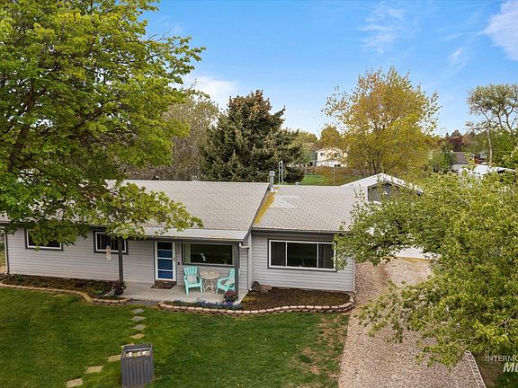 Beautiful, large lot in the heart of the Treasure Valley with NO HOAS's! Hardwood floors, vaulted ceilings, open floor plan with 2 sided fireplace. Efficient kitchen includes built-in microwave, stainless appliances and breakfast bar. Utility room w/extra cabinets for storage. Master with on-suite bath. Plumbing and electrical within last 7 years. Pre-Inspection completed. Over a ¼ acre with a private well and city sewer. Shed in back was used as an adorable chicken coop. Conveniently located in a quiet neighborhood close to the Village, lots of shopping and restaurants. Detached oversized garage with work bench and storage. Country atmosphere right in town.