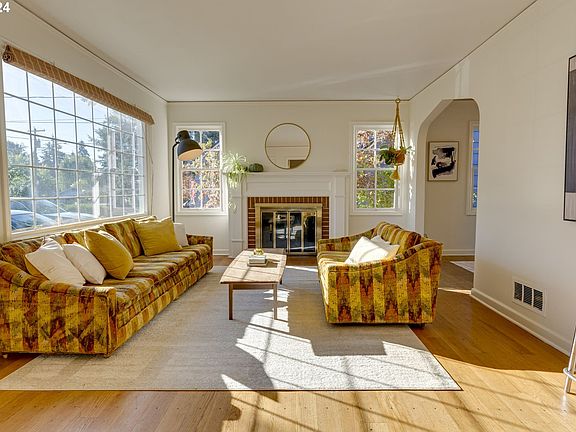 This solidly built Cape Cod is a real find- a very pretty home with vintage charm and updated systems! Situated nicely on an oversized corner lot, the yard is huge and ideal for pets, gardening, or anyone who enjoys a fenced backyard, patio, and a lush green lawn. The home is sweet as pie, with beautiful warm wood floors, light-filled rooms, tall ceilings, and great overall flow. The living room has a large picture window and a wood-burning fireplace. It opens up to the dining room overlooking the greenery of the backyard. The kitchen is darling with a dishwasher, plenty of storage and a big window over the sink overlooking the backyard. There are 2 bedrooms on the main level with a full bathroom in between. Upstairs has 2 more bedrooms and plenty of storage. Down in the basement, the vintage pizzazz really shines with wood paneling, groovy carpet, and another full bathroom with vintage wall paper. The basement also includes a utility room with laundry, storage and a workbench. The home has been very well maintained and updated, including fresh exterior paint, and a new above-ground oil tank, and a decommissioned underground oil tank scheduled to be completed this month (October 2024). Central air will keep you cool in Summer. A shed in the yard is great for storage and could be used as a small workshop. This solid and sweet home is located in a lovely neighborhood, on a bike-friendly street, just a block from Hancock City Park and close to highway access and amenities. Come see for yourself just how much space, charm and value this house has to offer! *Open house Sat 10/5 10am-12pm & Sun 10/6 12pm-2pm* [Home Energy Score = 1. HES Report at https://rpt.greenbuildingregistry.com/hes/OR10233374]