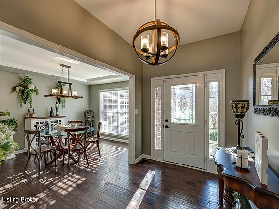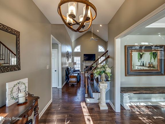 Fabulous 4 BR, one owner, brick home, minutes from Historic Downtown LaGrange on a large, wooded lot. This home features vaulted ceilings, palladium windows, Bruce hardwood and tile flooring and much more! Main level living with soaring ceilings in the open living room with gas/wood fireplace, eat in kitchen with 42'' cabinets, butcher block countertops (finished with food grade sealer) and all new or upgraded stainless steel appliances. Formal dining room or office, foyer and spacious primary bedroom with very cool double vanity, large, tiled shower and two walk in closets. Screened in porch off the primary suite. The laundry room has a sink and window. Large rear deck with wooded view opens from the kitchen's doors. Upstairs are 3 bright and beautiful bedrooms and a full bath, new carpet installed 2023. The lower-level den has a gas/wood fireplace and tray ceiling. There is a large gym with 2 storage closets. The front room has large windows and can easily be made into a kitchen area, this room opens to the park like cobblestone patio. Then there is a room that could be completed for a 5th bedroom, if needed. HVAC installed Jan 2024. Beautiful home near shopping and I 71.