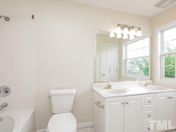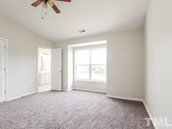 This Raleigh two-story home offers a kitchen breakfast bar, master bedroom walk-in closet, and master bathroom dual sinks.