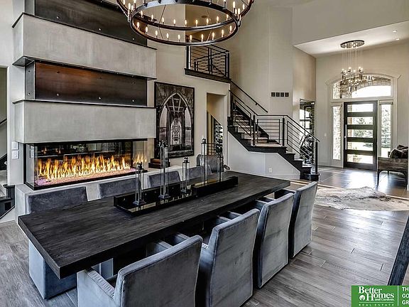 Experience luxury living in this completely updated 1.5 story home w/over 12,000 sq ft in The Ridges. This magnificent 5 bed/9 bath/7 car garage w/1,608 sq ft sport court w/garage door & salt water pool w/35 ft custom waterslide is your very own personal resort. The main level of this home begins w/entering into stunning beauty w/2 story ceiling heights w/an amazing view of private backyard oasis. The design details cannot be overlooked with the custom wine room, 2 story fireplace, beautiful wood flooring, custom cabinetry in kitchen w/quartz countertops, hearth room, living room, loft w/windows to overlook court & pool. Lg MSTR suite w/separate closets & vanities. The deck overlooking court features glass floor to overlook car collection in garage below. Bonus room upstairs & each bedroom has private bath & large walk in closets. LL entertaining dream: wet bar, rec area, movie room, family room, exercise rm, pool room w/wet bar & garage doors. Elkhorn South schools & perfect location!