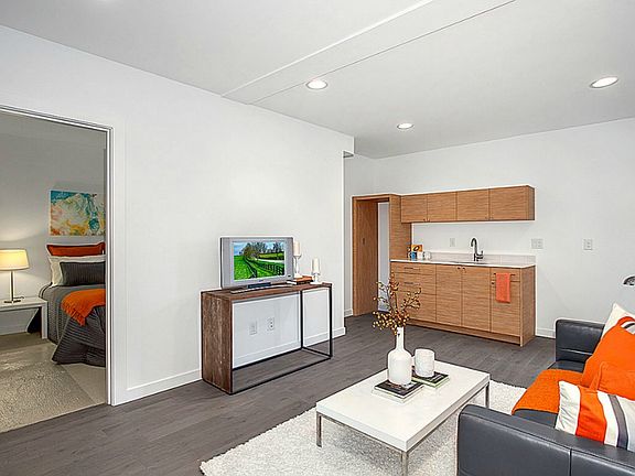 DEP Homes introduces this modern new 4-star Built Green townhouse! Boasting the latest trends in smart design, this floorplan has an entry level bedroom, full bath, den with kitchenette and laundry. Upstairs, a spacious & open main living area centers around the sleek well-appointed kitchen. The top floor shares a bedroom & full bath with your master suite. Perched high above the neighborhood is your private rooftop deck with Mt Rainier in the distance. Dedicated off-street parking space too!