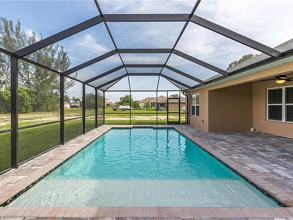 NEW LOWEST PRICE 4 BEDROOM POOL HOME NEVER BEEN LIVED IN STILL UNDER WARRANTY LOCATED IN DESIRABLE SW CAPE CORAL. IMMEDIATE OCCUPANCY !!!! FEATURES 18" TILE THROUGHOUT EXCEPT CARPET IN BEDROOMS, ALL APPLIANCES INCLUDING WASHER AND DRYER, BLINDS INCLUEDED EXCEPT FOR PATIO DOOR, GRANITE COUNTERTOPS THROUGHOUT, CROWN MOLDING IN GREAT ROOM, KITCHEN AND FOYER. UPGRADED LIGHT FIXTURES AND CEILING FANS THROUGHOUT. LARGE POOL FEATURES SALT WATER AND SOAKING SHELF WITH BUBBLERS. HURRICANE SHUTTERS INCLUDED, AUTOMATIC GARAGE DOOR. LARGE CLOSETS THROUGHOUT WALK IN PANTRY IN KITCHEN AND HUGE WALK IN CLOSET IN MASTER BEDROOM. LOCATED OFF VETERANS AND 20TH GREAT LOCATION CLOSE TO SHOPPING, DINING AND BOATING. ASSESSMENTS PAID!!! THIS IS A MUST SEE.