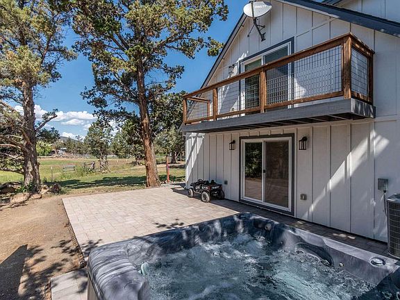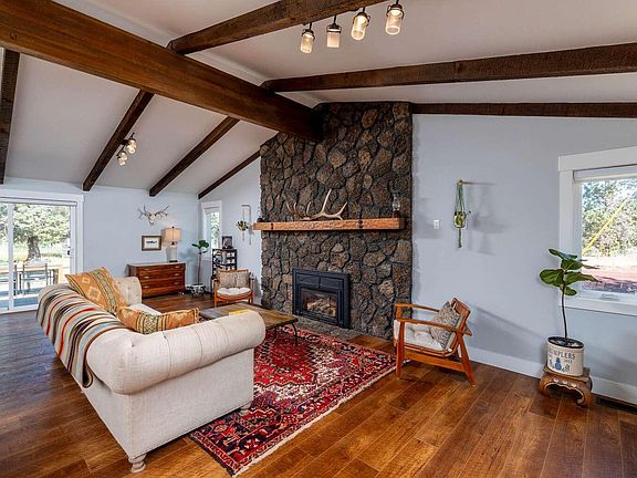 Peace and quiet while still being close to both Redmond and Bend! 8 minutes to Redmond and 20 minutes to Bend settled on a quiet private street surrounded by nature with views of the cascades. 5 acres with 2.1 acres of irrigation rights make this mostly flat lot incredibly usable and easy to maintain. The main living area has high vaulted ceilings with large beams giving it that lodge feel with the amenities of a kitchen with new appliances. The barn / garage has been completely renovated and is ready to host a mother in law / guests / remote worker office and is 90% to completion. The two bed rooms upstairs are large and airy. The large wrap around flagstone patio has a new hot tub and the brand new pergola and turf area is ready to host year round bonfires. Sellers are currently in the home and will not move out until July 11, 2024. Sellers are open to leaseback if buyer wants to close before then.