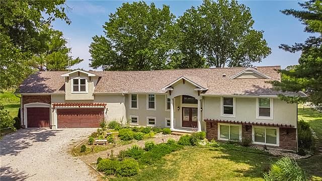Welcome to your beautiful acreage estate! This 10-acre property has it all. Outside - Enjoy wildlife views on tiered deck, or in pagoda with electrical outlet and fire pit/stove. Get active on the lighted sport court lined for basketball, volleyball, and pickleball. Go fishing in the stocked pond on the shore-line or off the dock. A wonderful treed, campfire area is just steps away. Perfect for an overnight out in the tent. Room for a few frisbee golf holes or to work on your wedge game. Barn with concrete floor, lighting and electrical, back area for livestock. Fenced livestock area with 3 sides lean to shelter with concrete enclosure. A huge garden already fenced and in place with water connection flanks the grounds. Your land backs up to farmland on the east and is directly across from entrance to Longview Lake Horse Trails. Inside - With just over 6000 square foot of living space, you have everything you need. Beautiful, large windows provide peaceful country living views on the back side of the home. A huge family room area on the main floor, as well as the lower walk-out level is great for entertaining. Updated kitchen and appliances, a large master, master bath and walk-ins, 4 garage spaces, and a separate, full mother-in-law quarters connected to the home. Two wood-burning stoves, large laundry room and the two large mud rooms are also great adds. Just minutes from Lee's Summit schools, shops, dining, hospital and fitness facilities. This is such a unique opportunity. Schedule a tour today. 2021-09-27
