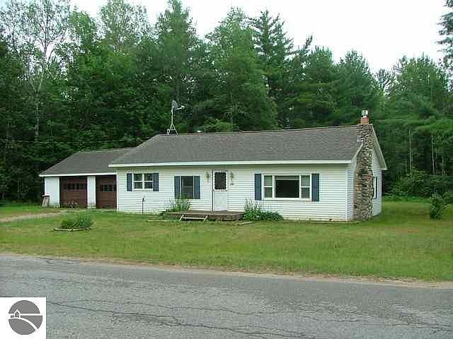 Ranch home in the country. This 3 bedroom 1 bath home has had some remodeling done. Nice front entrance with frenchdoors to living room with fireplace. Large, eat-in kitchen with adjacent laundry/mud room. Oversized detached 2 car garage with workshop. Easy access to Kalkaska and Traverse City.