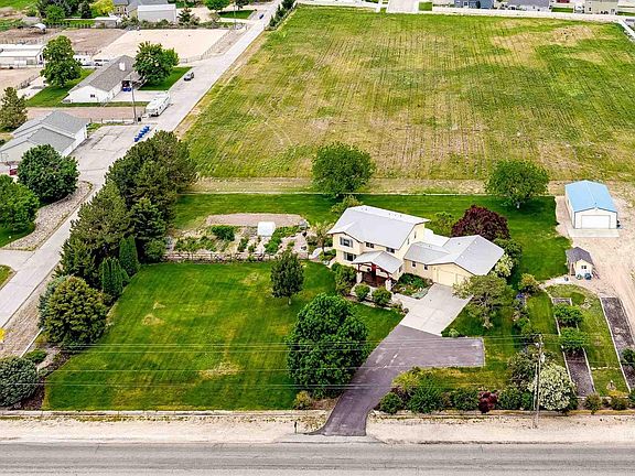 Peace & privacy on 1.59 acres! Covered front porch, framed by beautiful roses. Meticulously cared-for home with a spacious kitchen featuring a center island, Cambria quartz countertops, a walk-in pantry & abundant cabinetry, including a convenient built-in baking station. Stunning refinished hardwood floors & fresh new carpet. Renovated primary suite boasts tile floors, a dual sink vanity, a tiled walk-in shower & a walk-in closet. Striking stone hearth with built-in bookshelves. Cost-effective well water for the expansive yard & outdoor oasis, complete with walnut, cherry, apple, nectarine, apricot & pear trees, plus grapes & berries, attracting various wildlife! This well-maintained home includes updates to the HVAC, roof, windows & more! Relax on the back patio overlooking the manicured lawn. Large laundry/mud room. Oversized two-car garage easily accommodates larger vehicles. Insulated shop with 220 power & private driveway. Easy access to the Ten Mile/I-84 interchange. Don't miss this unique opportunity!