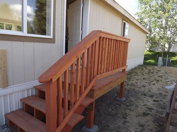 in process of nearly complete redo inside. New flooring, paint, trim doors 2 new decks, appliances,counter tops, backslashes, some fixtures and more. Plan is to be done by 08/15/15 Quality materials and work as if owner was going to live there.