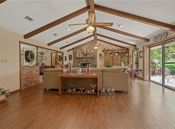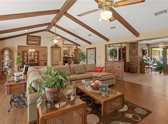 Beautiful 4 bed 3.5 bath brick home that sit on 190 acres used as a cattle ranch. Paved driveway w/ 40+year old live oaks that line the driveway. 30 acres of 7+ yr old pine trees. Oversize metal shed with 2 open wings with 16 ft door. Utility shed in backyard with 3 garage openings. Updated flooring, Granite counter tops, cathedral ceilings, wet bar, outdoor speakers, 2 wood burning fireplaces and a covered patio. The master has tray ceiling, walk-in closet, separate shower, soaking tub.