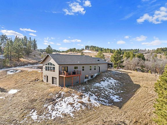 Listed by Doily Fulcher - REMAX in the Hills - Spearfish. 605-801-0640. Don’t miss out on this beautiful custom-built home in Spruce Mountain Estates. This home shows off the countryside with this stunning 3200+ Sq Ft, 2-bedroom, 2-bathroom ranch style home with full unfinished walk-out basement. Situated on an expansive 7.67-acres, this property offers privacy, breathtaking views, and an abundance of space. With its 3+ car heated garage (1280 Sq ft) and numerous desirable features; this home is sure to impress. For the RV lovers, there is convenient exterior power and septic hook up. The vaulted living room has a gas fireplace and floor to ceiling windows that show off the amazing views of Bear Butte. Efficiency meets elegance with main floor open island kitchen with matching appliances and granite countertops enhancing your daily routines. Step outside to the deck, where mornings begin with coffee moments and evenings come alive with gatherings among friends and family. Enjoy nearby fishing/paddle boarding at the 7-acre subdivision pond and pavilion. Experience the serenity of nature in the Black Hills while still being within minutes to Whitewood, Spearfish and Sturgis. If you're searching for a peaceful retreat in the country, this custom ranch style house is the perfect choice.