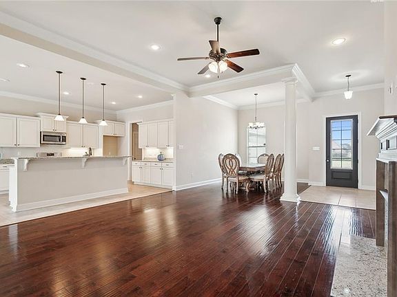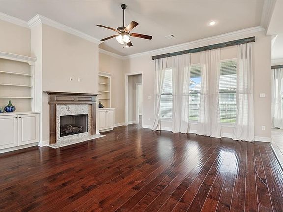 Welcome to the home you have been waiting for, stunning entrance welcomes you to the highly sought after Woodlake Estates community w/5 lakes, community pool & cabana. This exceptionally maintained home features an open concept design, offers the perfect combination of luxury and comfort, foyer & dining area open to spacious living rm all w/11' ceilings adorned with a gas fireplace accented w/bookshelving & designer soft close cabinetry, a wall of windows allowing natural lighting, massive chef's dream kitchen boasts an abundance of 42" designer soft close cabinetry with undermount lighting, gorgeous granite countertop space, breakfast bar with pendant lighting along with stainless steel appliances including a gas range, enjoy starting your mornings in the keeping room coziness off the kitchen, retreat to the spacious primary suite at the end of your day featuring wood flooring, tray ceiling and natural lighting, relax in the spa area in your soaking tub, large vanity space including a linen cabinet and double vanities, separate shower and toilet areas, a massive walk-in closet along with an additional smaller walk-in closet with built-in shelving, the split floor plan opposite primary suite offers a bedroom with ensuite bath, two other bedrooms with a large guest bath with separate tub and toilet area situated between the bedrooms, a large pantry, laundry room with designer soft close cabinetry and a mud room with beaded board, coat hooks, boot bench, drawers for storage and granite topped desk area designer soft close cabinetry. Energy efficient items include radiant barrier decking, low e windows and a gas tankless hot water heater. This amazing home offers beautiful landscaping welcoming your guests, 2 car oversized side entrance garage, extended parking area providing ample space for vehicles, gutters and Flood Zone X. Don't miss out on making this incredible home yours as it will not last long on the market so call today to schedule an appointment to view!
