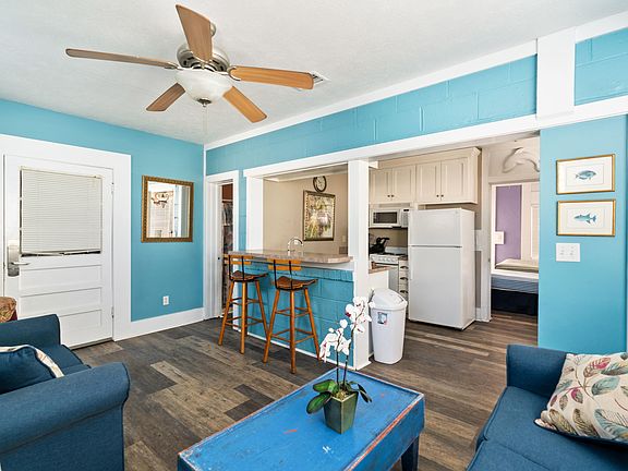 This unique home features the main house which has 2 two-bedroom apartments that can either connect together by a spiral stairway in the first entrance or be closed off from each other. There are also two very nice efficiency apartments. The top efficiency connects to the main house by a balcony and the second efficiency is below the top one and opens up into the pool area. These apartments can be rented separately during off seasons or combined to make 1 great 6 bedroom 5 bath home. It's like having your own little family resort. The nicely furnished main house has the two 2 bedroom apartments. The upstairs apartment has two bedrooms / two baths. The bedrooms both have king sized beds and walk in closets. There is a queen size sleeper sofa in the living room and six can sleep comfortably. The full kitchen seats six and includes a dishwasher and opens up into the living room. The balcony runs the length along both the living room and master bedroom, both of which have partial ocean views. The main house also features a connecting spiral stairway that is in the first entrance and leads to an additional lovely 2 bedroom / 1 bath apartments first entrance downstairs. The downstairs apartment features a full kitchen with dishwasher as well that opens up into the living room. The bedrooms have a queen bed in one and a double and single bed in the other. This apartment also has an additional sun room that is in the front of the home and includes a queen sleeper sofa. There is also a sleeper sofa in the living room so 9 can sleep comfortably. Partial ocean views can also be seen from the connecting top balcony that leads to the upstairs efficiency apartment from the upstairs 2 bedroom apartment. The efficiency apartments each feature a queen sized bed, a full-sized kitchen with dishwasher and a full-sized bath. The second efficiency apartment below the top one opens out onto the pool deck and the bed in that apartment is a queen-sized Murphy Bed that can be left open or closed into the wall. A stackable washer and dryer are on ground floor by the pool and there is also an outside shower in back of the home where there is additional parking as well. Enjoy a cookout by the private tropical pool after a hard day at the beach. Pets are NOT allowed. If you sneak in a pet of any kind you will be charged an additional $175 and be asked to leave. Renter will cover all gas, water, electric and internet.