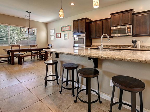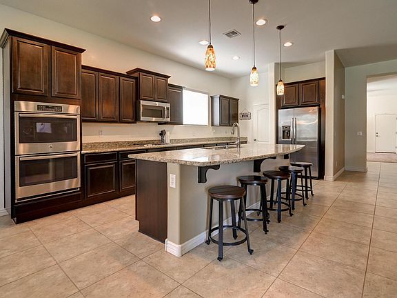 Nicely upgraded 5 bedroom 3 1/2 bath house with DOWNSTAIRS MASTER SUITE! Four bedrooms and 2 full bath rooms are located upstairs with loft and bonus space for the kids. Split 3 car garage with pavered drive and walkway. Kitchen has granite counters, gas cooktop, double oven, large pantry. Large grass island in backyard. Super energy efficient! Don't miss this one!
