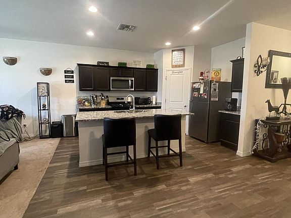 - Kitchen Features: Kitchen Island, Dishwasher, Disposal, Refrigerator, Pantry, Granite Countertops, Built-in Microwave, Range/Oven Elec