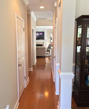 Meticulous well-kept end unit with attached two car garage in desirable St. Philip Square. Spacious master suite on main level, granite counters in the Kitchen and Master Bath. Upgraded appliances, hardwood floors, open floor plan, crown molding, plantation blinds, plenty of natural sunlight and community walking trails, pool, and playground. Private & serene outdoor living space enclosed with brick wall courtyard, covered patio, and backyard water feature! This beautiful home is a must see!