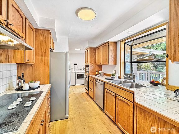 You'll love this charming one story 3 bed 1.75 bath home with it's cottage like interior and magical back yard. This home is in excellent condition with a newer roof, newer deck & new furnace in 2020. This home has been pre inspected, ask for a copy! Oak hardwoods, wood burning fireplace, SS appliances in the kitchen, plus skylights, large & bay windows throughout. Sit on the deck and enjoy the colorful perennials that rebloom every year including Rhododendrons, Giant Poppies, Irises, Lilies and Violets. Prime location: 5 mins to Angle Lake light rail. Close to airport, I5, beaches, parks shopping and dining.