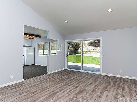 Absolutely charming and move-in ready! This home offers beautiful, new laminate flooring, new windows, new roof, new paint inside and out, new dishwasher, an open living room with high ceilings and recessed lighting, a bright kitchen with tile flooring, refinished cabinets, refrigerator included, and windows that overlook the large, lush backyard, with fully fenced in-ground spa, great for entertaining! indoor laundry, with washer and dryer included, 3 spacious bedrooms and 2 full bathrooms, paved RV area, near shopping, schools, parks, and Valencia Town Center. Must see!