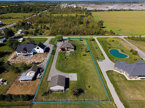 Sprawling 3-bedroom, 2.5-bathroom bungalow situated on a 1.37-acre lot enclosed by elegant black metal fencing. A rolling gate and long driveway lead to an attached double-car garage with concrete floor and further on to an additional 30' x 32' insulated & heated workshop at the back perfect for hobbyists or running your business. Step inside the home to an open-concept main floor with soaring, 12' vaulted ceilings and rich hardwood floors. The living room features a cozy gas fireplace and large windows overlooking the serene backyard. The kitchen with custom, maple cabinetry has a centre island, stainless steel appliances, granite countertops, and a separate pantry. Enjoy meals in the adjacent dining area or step out onto the expansive covered deck. The main floor also includes a versatile office or formal dining room. The large primary bedroom has large, east-facing windows, walk-in closet, and a private ensuite bath. A second bedroom and full bath on the opposite side of the home provide added privacy, while a third bedroom is situated above the garage. Convenient main floor laundry completes the layout. The fully finished basement features a games room complete with a pool table, a large rec room with electric fireplace, a 4th bedroom, a sauna, a powder room, and ample storage. Double doors lead to the backyard, with a 300sq. ft. deck extending across the back of the home, a patio and a charming stone fire-pit, surrounded by raised garden beds. Tucked off Highway 3 - just outside of Port Colborne - this home offers peace & quiet with close proximity to local businesses, schools, amenities & the lake. Don't miss your chance to make this beautiful retreat your own! **EXTRAS** Sauna, Water Heater Owned, Work Bench, Workshop