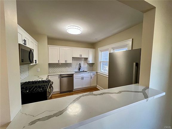 Experience luxurious, modern living in these beautifully renovated 3-bedroom, 1-bath units, available immediately. Each unit offers one-level living, meticulously updated for an elevated lifestyle. From gleaming hardwood floors to elegant new light fixtures, every detail has been considered. The fully remodeled kitchens feature quartz countertops, high-end stainless steel appliances, tile backsplash & solid wood cabinetry. Each unit includes formal dining & spacious living rooms, along with two porches a main porch for relaxation & a private porch off one bedroom for added charm. Bathrooms have stylish vanities, tile work, new toilets, and more, creating a fresh feel. Each unit includes a washer & dryer, updated electrical, & new furnaces. Rented separately, each unit feels nearly brand new with luxurious finishes. Located near Syracuse University, Le Moyne College, highways & businesses, this property offers prime accessibility. Make one of these stunning rentals your new home! Owner pays for Water/Sewer. Looking for a one year lease.