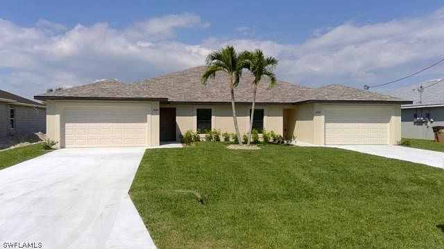 New Construction Duplex with 3 bedrooms and 2 baths each side, laundry in residence, and over-sized garage. Rear patio under truss. Porcelain plank tile throughout the entire living area, wood cabinets with beautiful maple doors in a smoke finish, quartz counter-tops, stainless steel appliance packages. CBS construction with plywood roof sheathing and dimensional shingles, Impact windows and doors. Floratam lawn with sprinkler system. Local reputable builder providing warranty. Additional adjacent properties are also available.