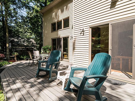 Enter this quiet private cul-de-sac on a beautiful tree lined street and you will be ready to call this home! Stunning wooded views from the sun-filled 2 story great room . Adjacent to that, a custom cherry kitchen with an abundance of cabinets. Current owners have installed Brazilian oak floors through most of the main level. Rich exterior and so many recent improvements including furnace, AC and water heater in the last 4 years and newer appliances. Main floor laundry w/ washer & dryer. Roof was replaced in 2010 w/ 30 year shingles. Enjoy this tranquil perennial filled yard while sitting on the newer composite deck . Four large bedrooms on the upper level all decorated in neutral tones. Tray ceiling in master with a walk-in closet and private bath with separate tub and shower. The flex room in lower was partitioned off and used as a guest suite with the full bath being right next to it. Second cozy family room with another gas fireplace in the lowest level and plentiful storage.