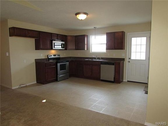 Take a look at what this beautiful home has to offer at an affordable price! This home features 2 spacious beds, 2 full baths, 2 car gar, a large main floor laundry, vaulted family room & spacious kitchen. The 2 bedrooms have large walk-in closets. Vaulted ceiling in the family room. White 6 panel doors and trim throughout, brushed nickel door knobs, hinges & lighting. Upgraded cabinetry with hardware, dishwasher, stove and built in microwave. Home has extra wide hallway, doors, and a full shower in master with small step up. A large concrete patio off the kitchen--great for grilling season. Large covered front porch. Level lot that backs to some woods. Great for anyone who wants spacious rooms all on the main floor. The basement is big, bright & has lots of natural lighting. The front porch is very nice sized-perfect for your chairs & decorating. Driveway is an extra wide pour for ease of getting in and out of vehicles. All in a great location convenient to highway access & much more.
