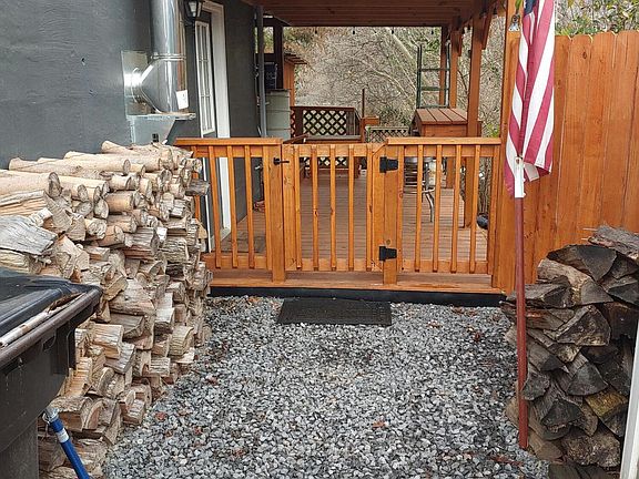 Rustic touch in this home fixed to perfection with lots of natural wood. Downstairs you'll find a wood stove with den and bedroom and bathroom. Home sits on over an acre with barn and storage shed. The outside porches and deck give you plenty of space to enjoy the outdoors. Goats and chickens are there now and give you a feeling you're in the country. Brand new roof in November of 2023. Porches are a year old. Plenty of room.