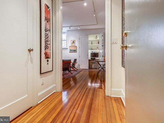 UNDER CONTRACT - OPEN HOUSE CANCELLED. Ensconced in the Beaux Arts grandeur of one of Washington's Best Addresses, Residence 118 at The Wyoming offers a unique reconfiguration and sleek contemporary design in nearly 600 square feet of elegant living space with 9.5 ft ceilings. This unit was gut-renovated and lovingly reimagined by to create a sophisticated yet casual space for comfortable living . This perfect pied-a-terre is now used as a home office and guest suite. It is also perfect for an in-law suite, media room/ den, art studio, or rental. All just a few blocks from fine dining, shopping, galleries and Metro! Residence 118 is located 1 full level above street level and served by the new North Tower elevator (2020) or stairs up to Level One. (So, no elevator sharing required). A large FOYER features original refinished heart pine floors (throughout the unit) and a deep hall closet (which could host an in-unit laundry). The spacious and light-filled LIVING ROOM and DINING AREA offers ample room for relaxing and dining, PLUS a terrific built-in HOME OFFICE which can be concealed by custom bi-fold wood doors when not in use. Residence 118 features an OPEN KITCHEN with custom cabinetry, elegant granite counters, Stainless steel appliances (electric cooktop, refrigerator/freezer, and microwave (a dishwasher can easily be added). The bright and spacious BEDROOM SUITE is a private oasis for tranquil relaxation. It is separated from living area by custom double pocket doors w/ translucent frosted glass insets, and includes ample closet space. The elegant ENSUITE BATH features Carrera marble floors and walls, glass-enclosed shower, and top-of-the-line fixtures, lighting, and finishes. Residence 118 also features Marvin windows, motorized custom blinds, and custom dimmable lighting. Extra storage is provided in an assigned basement storage unit. The low condo fee of $475/mo includes management, 24 hour desk, natural gas, hot water, heating, public water and sewer, master insurance, and contributions to reserves. Ample parking is available in the neighborhood on the street or for rent in numerous private garages. Main level common laundry located just 1 level down. AMENITIES and SERVICES of The Wyoming include a grand Porte Cochere and circular drive for guests, stately Beaux Arts lobby with reception hall, 24-hour Concierge and package reception, monitored video security, stately rear garden and play areas, terrific roofdeck, bicycle room, crafts room, and common laundry facilities. . The pet-friendly Wyoming is, altogether, an amazing place to live in the heart of everything! CLICK ON THE MOVIE ICON FOR VIDEO TOUR AND FLOOR PLAN. PLEASE NOTE: A 1,000 Sq Ft 1Br/1Ba apartment (Residence 112) located right next door, also beautifully renovated, is concurrently offered at $679,995, creating the rare opportunity for 1,600+ SqFt, 2Br/2Ba of living space. DOWNLOAD OR ASK FOR FACT SHEET!