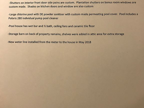 - Green Features: Storm Doors, Programmable Thermostat, Low Flow Plumbing Fixtures