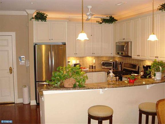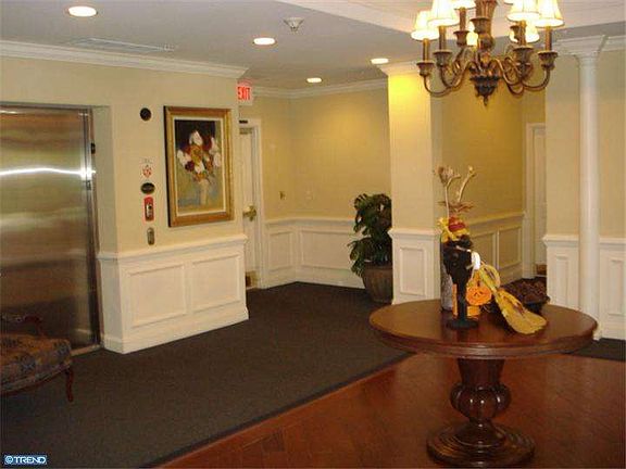 Enjoy the serenity of walking trails and wooded views from this Gorgeous upgraded Arlington 2 bedroom/2 full bath luxury condo. Upgraded amenities include stainless steel appliances, beveled granite countertops, and 42" cabinetry with up/under custom lighting, a custom tile back splash and a walk in pantry plus counter seating,crown moldings, wood floors throughout the foyer and kitchen. The living and dinning areas, with 9' ceilings lend an elegant and classic feel. The deluxe master boasts an extra bump out seating area, large walk-in closet, & sumptuous master bath. Bath detail includes upgraded tile work, garden tub, double vanity, and extra cabinetry. Additional full bath across from the second bedroom also has upgraded designer finishes. Watch the sun set over the trees from the spacious balcony with french door sliders. Prime parking spot in the attached garage, very close proximity to entry door. Impeccably kept and secure building across from coffee shop, very close proximity to prime shopping, & easy commute to Philadelphia. Bring your beloved pet & enjoy the Grande life! Seller to pay the association dues for 1 year on behalf of the buyer on any accepted offer !!!!!!
