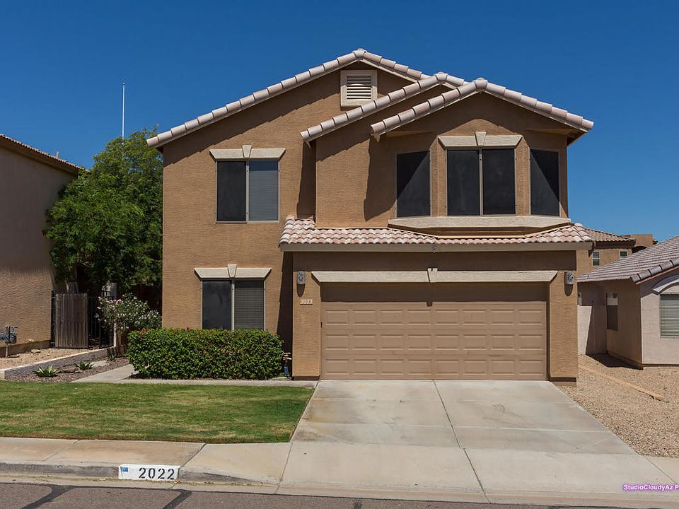 Have a large family and looking for 5 bedrooms and 3 baths in northeast Phoenix? Welcome to the private Boulder Mountain subdivision. This 2 level home is almost 2,200 s/f, has 5 bedrooms, 3 full baths and a loft. Downstairs you will find 1 bedroom, a full bath, fireplace, large kitchen with island and walk in pantry. Upstairs there are 4 bedrooms including the master, 2 full baths, large loft, upstairs laundry & a view deck. The backyard has a covered patio, large play pool with sheer waterfall. AC compressor just replaced in June, new pool filter & pool light. Washer, dryer, refrigerator are included. Pre-wired for alarm. This home is close to Loop 101 & SR51, Desert Ridge Mall, Costco & within the Paradise Valley School District. Rare 5 bedroom home in NE Phoenix for under $350,000.
