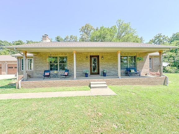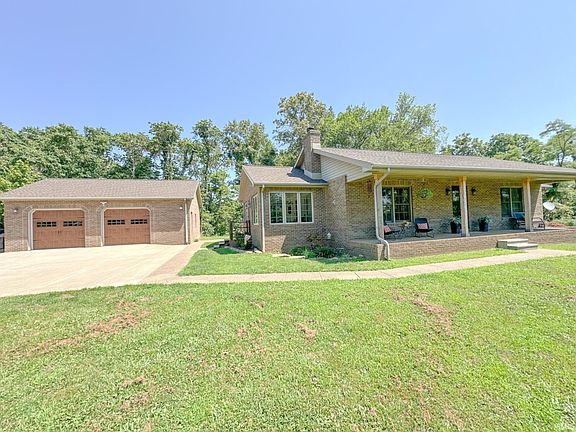 This all-brick ranch home with a FULL BASEMENT is tucked away on over 5 acres of peaceful seclusion, offering the perfect blend of privacy, space, and function. With 3 to 4 bedrooms and numerous flex spaces, this home checks all the boxes. Step inside to find a welcoming floor plan featuring a beautifully renovated kitchen with ample space for an eat-in table and even an island, plus a pantry and convenient access to the laundry room and back deck. The sunroom is a showstopper-bright, airy, and would be perfect as a home office, mudroom, or bonus entertaining space with panoramic views. The spacious primary suite offers his-and-hers closets and an en-suite bathroom, while the two additional main-level bedrooms are generously sized with a shared full bath. The living room is warm and inviting with its timeless brick wood-burning fireplace. Downstairs, the full basement offers abundant space for entertaining, hobbies, and storage. You'll find a rec room, bar, family room, half bath, two walk-in storage closets, and an extra room ideal for a 4th bedroom. Outside, a detached garage/workshop provides excellent utility, including a rear addition for storing equipment and tools to maintain your land. If you've dreamed of country living surrounded by farm land with no sight of a neighbor-this is the one. Come experience the serenity of this beautiful property, located at the end of a quiet, private lane!