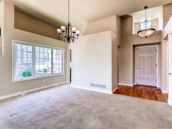 This lovely patio home in the quiet neighborhood of Peregrine is ready and waiting for you to come home to! Mountain Views off the deck, and in the back of the home, and a multi-level deck/patio to enjoy them from. The kitchen has a new dishwasher, a smooth-top range/oven, granite tile counters, a center island, and an eat-in nook area. The spacious dining/living room area has 11ft ceilings, built in cubbies and a gas fireplace, as well as a walkout to the deck. The double doored master bedroom has a walkout to the deck, with a private bath and walk-in closet. The soaking tub in the master bath looks out at the mountain range. There's a second bath and bedroom on the main level, as well as the laundry room. In the basement with 9ft ceilings, a large flex space (14x12 Other Room) gives some options for furniture, and the huge lower level family/rec room has built-ins and a gas fireplace. Walkout from the basement to the lower level concrete patio. Third bedroom and another bath in the basement. Storage room is finished and could be a fourth bedroom. Finished space under the stairs offers more storage area. Water feature in the backyard next to the flagstone patio.
