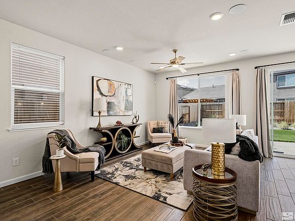 OPEN HOUSES! 5/6 & 5/7 11am-2pm. Welcome to the stunning Cyan Community in the desirable Damonte Ranch area. Situated across the street from the beautiful Cyan Park, this former Silverado Model Home is sure to impress with its exceptional upgrades and finishes. Step inside to discover an inviting open-concept living room that boasts surround sound, perfect for cozy movie nights or entertaining guests. The upgraded kitchen features sleek granite countertops, modern appliances, and ample storage space., The primary bedroom is a true retreat, featuring a luxurious en-suite bathroom with dual sinks and a spacious walk-in closet. 3 additional bedrooms provide plenty of space for family, guests, or a home office. This turn-key home has been meticulously cared for, with pride of ownership shining throughout. This home is ideally situated for the ultimate Nevada lifestyle, with hiking and biking trails nearby, and Lake Tahoe is just a short drive away. Don't miss this opportunity to own this exceptional home!