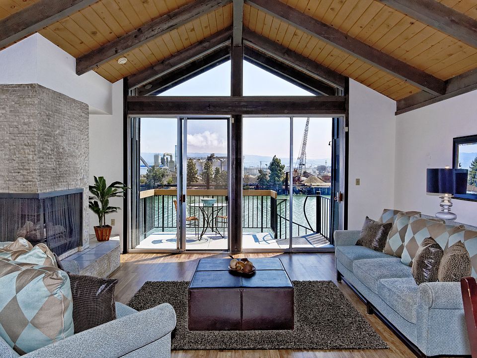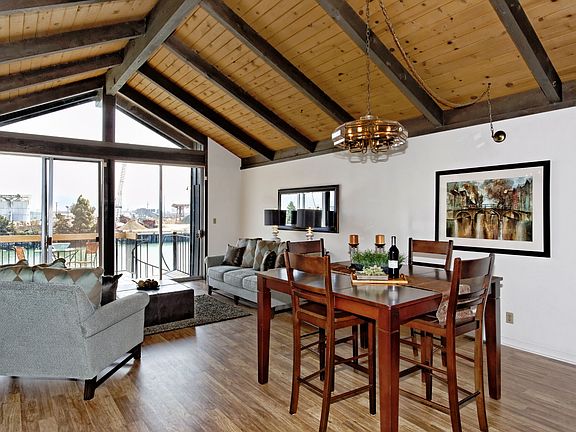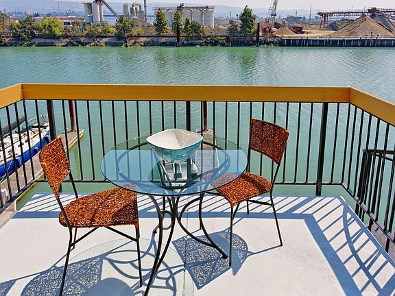 This Alameda waterfront condo has stunning views and a spacious floor plan. With two patios and a deep water boat dock, you can take advantage of the easy access to the estuary. The upstairs features an open living room and kitchen area with vaulted beamed ceilings. Downstairs features two master suites and updated bathrooms. This condo is conveniently located near schools, parks, shopping and freeways. Open 8/4 Sunday 2-4pmOpen 8/11 Sunday 2-4pm- 1,450 square feet & built in 1968, per county tax records- 2 bedrooms, 2.5 baths- Corner/end unit- Estuary views from living room, master bedroom & 2 patios- Deep water corner boat dock- Easy access to dock from rear patios or garage - Updated kitchen & bathrooms- Laminate wood floors- Fireplace in living room- Freshly painted interior - New carpet in bedrooms (July 2013)- 2 secure tandem parking spaces in gated garage - Community laundry room with owner's washer & dryer- HOA monthly dues: $375 (includes water & trash)