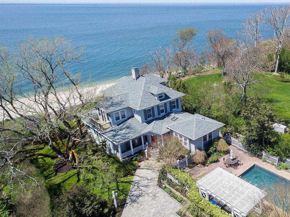 Exquisitely restored mint antique home overlooking LI Sound. Panoramic water views from many rooms, waterside patio, waterside deck, 2nd floor waterside balcony. Large eat-in gourmet kitchen, wood burning fireplace, 2 gas stoves, CAC, updated appliances. Private access to beach, heated gunite pool with pergola covered patio & hot tub. Original leaded glass cabinets and feaures.
