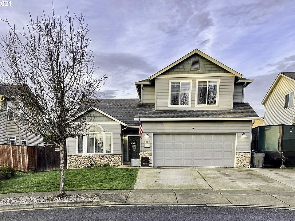 Beautiful, spacious 2 story Ridgefield home. This 4 bedroom 2.5 bath house boasts vaulted ceilings on the main floor, gorgeous laminate flooring, tons of natural light and open floor plan, central vac throughout, jetted tub in the master bathroom and a RARE oversized lot with fenced yard and RV parking. New exterior paint in 2020. Located in a quiet, friendly neighborhood. 1 block from neighborhood parks and walking trails. NO HOA!