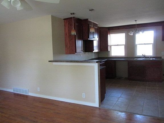 Open kitchen w/ breakfast bar & pendant lights. Vinyl replacement windows. 6 panel doors. Ceramic tile surround around tub/shower. New roof.