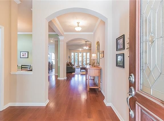 Built by David Weekley, 3 bdrm +study,2.5 baths, formal dining, family room, "children's retreat" or bonus room. Wood floors throughout entry, study, family & mstr bdrm. Huge bay window across back of living. Kitchen has loads of cabinets, granite counters and stainless appliances, large island/breakfast bar. Lush landscaping w/flower beds, gurgling fountain, vine covered arbor and backs to greenbelt. Covered patio and custom screened in area. Walking distance to Westside Elementary.