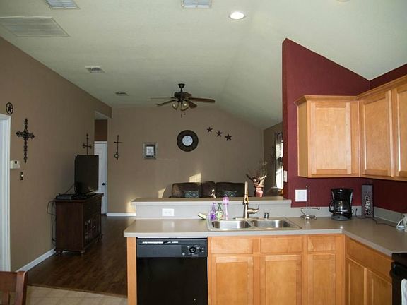 Great Home In Desirable Neighborhood on Corner Lot. 3 Bedroom, 2 Bath, large Living Area, Kitchen has Breakfast Bar, built in microwave, Eat in Area. Separate Utility Room is located off kitchen w Room for a Freezer and racks for pantry space. Master has walk in Closet, Separate Shower and Garden Tub, Make up area. Floors are Laminate, Bamboo, Carpet and Tile. Sitting on one of the largest lots in the development. The back yard is enormous.