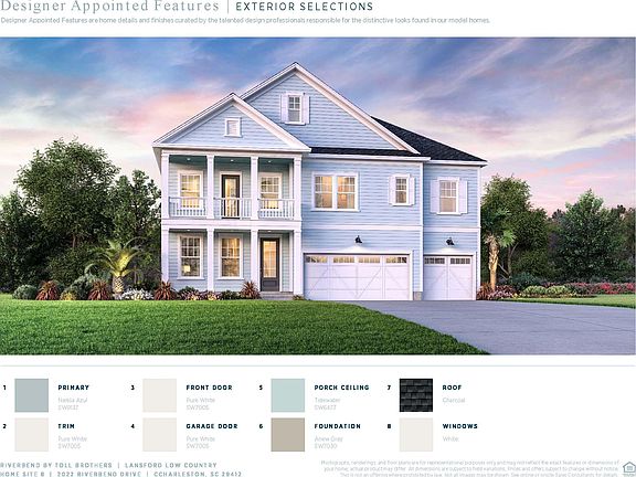 For a limited time, buyer can make interior selections! Riverbend is located on James Island, and is a boutique new home community featuring waterfront living amongst grand oak trees and deep-water access via a community dock to the Stono River. This Lansford Low Country home sits on a large, private homesite. The main level of the home features a secluded Primary Suite with a gorgeous tray ceiling, luxurious primary bathroom and spacious walk-in closet with laundry access. You will also find a grand two-story foyer and office space on the main level, large screened porch and a 3 CAR GARAGE round out the package! Upstairs you will find a loft, 3 additional bedrooms and a large bonus room that can be used as a fifth bedroom, media room, or a game roomHigh-end, designer curated features & finishes abound to make this beautiful new home truly unique. Closing costs incentive are available.